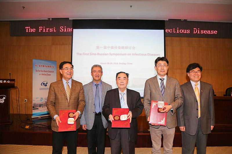 为落实国家“一带一路”倡议,积极推进与俄罗斯的卫生合作对接,促进民心相通,共商两国在疾病防控方面的重要合作举措,2018年3月28-30日,第一届中俄传染病研讨会在京顺利召开。来自俄方和中方约40名专家就结核病、艾滋病和流感防控等方面做了科研进展的交流,并就合作意向展开讨论。同时,会议举行了侯云德院士获国家最高科学技术奖的庆祝仪式。