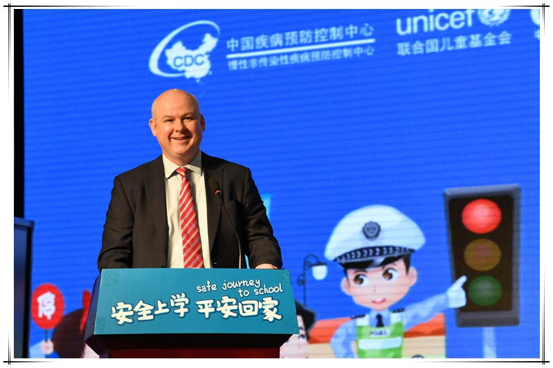 联合国儿童基金会驻华办事处副代表郑道(Douglas Noble)表示,道路交通伤害是威胁中国和全球儿童生命及健康成长的一个需要重点关注的领域。联合国可持续性发展目标号召在2020年实现减少一半以上的道路交通伤害死亡。这意味著我们需要使用安全的、负担起的和可获得的交通系统。我们需要特别关注妇女、儿童、残障人和老年人道路安全改善的问题。联合国儿童基金会将继续致力于儿童伤害预防包括儿童道路伤害预防工作,降低可控制可预防的儿童伤害造成的死亡和残疾,支持中国政府为实现联合国可持续性发展目标和儿童发展纲要制定的目标所采取的行动和努力。