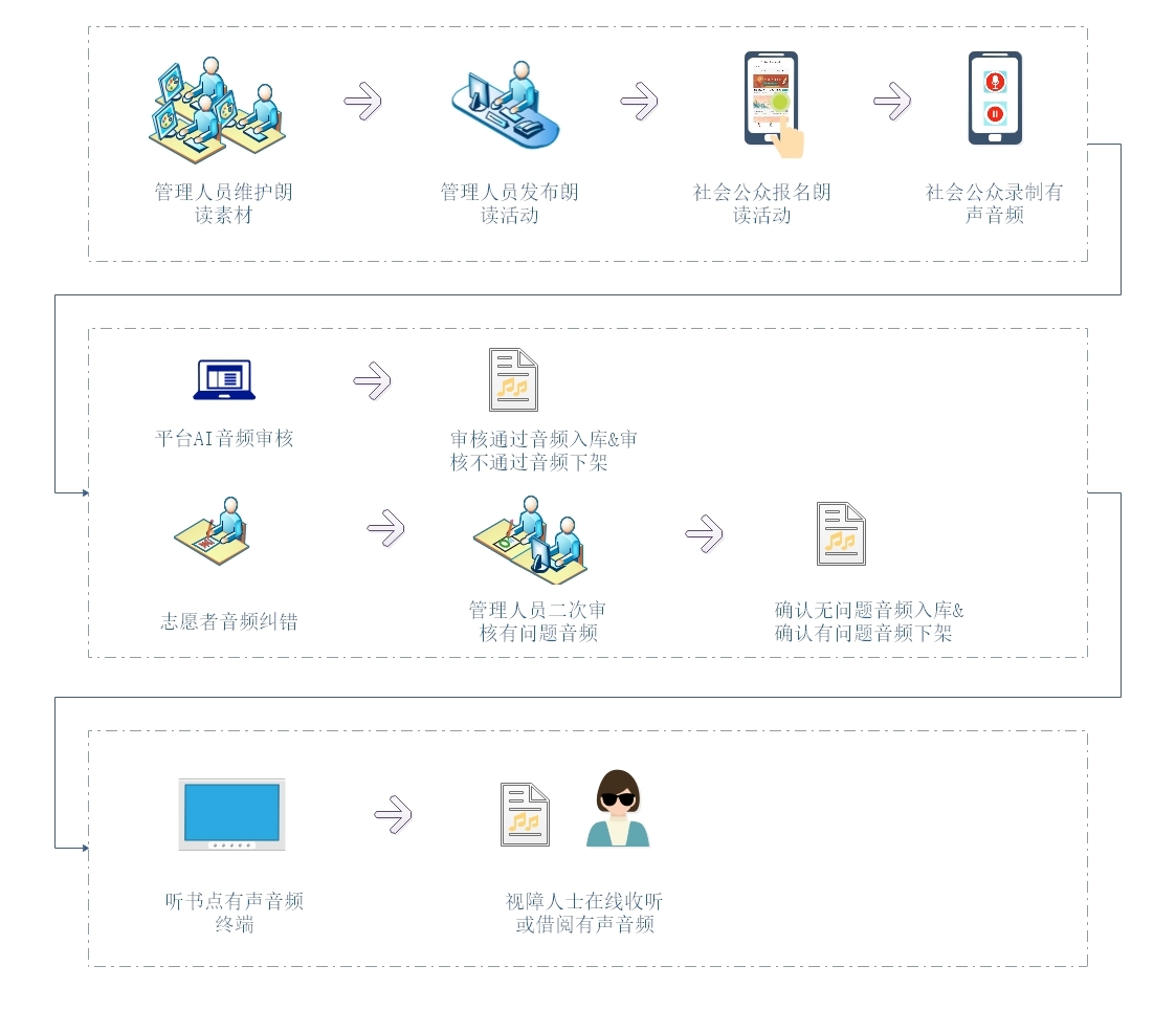 沈阳《关爱视障人士有声朗读系统》,是根据《马拉喀什条约》条约,以社会志愿者参与为主要方式,向视障人士提供有声资源的平台,从而促进全民阅读活动的开展。